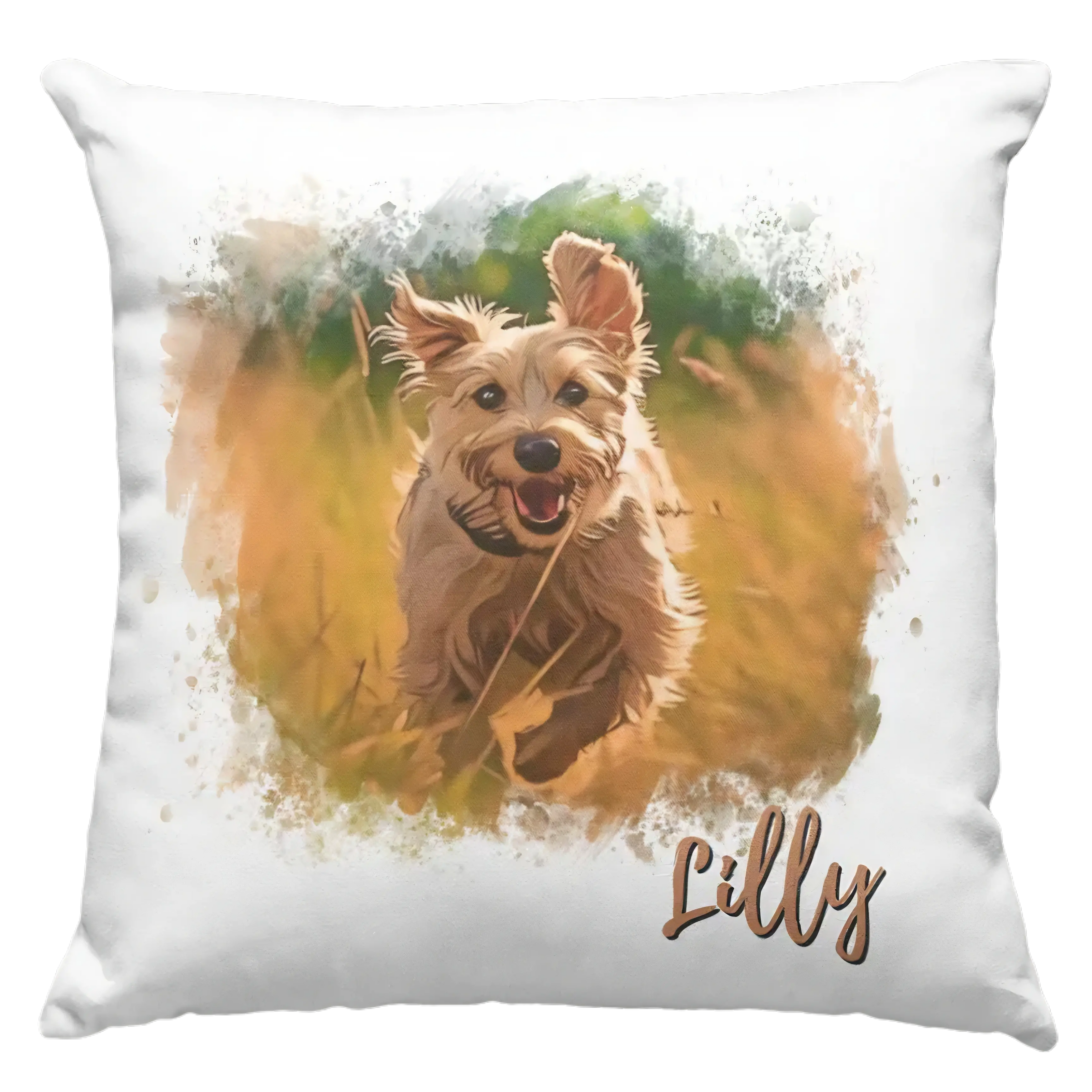 Lade ein Foto hoch – wir verwandeln es mit viel Liebe in eine einzigartige Comic-Illustration und drucken sie auf ein hochwertiges Kissen. Das perfekte Geschenk oder ein besonderer Blickfang für dein Zuhause. Mach dein Haustier unvergesslich!