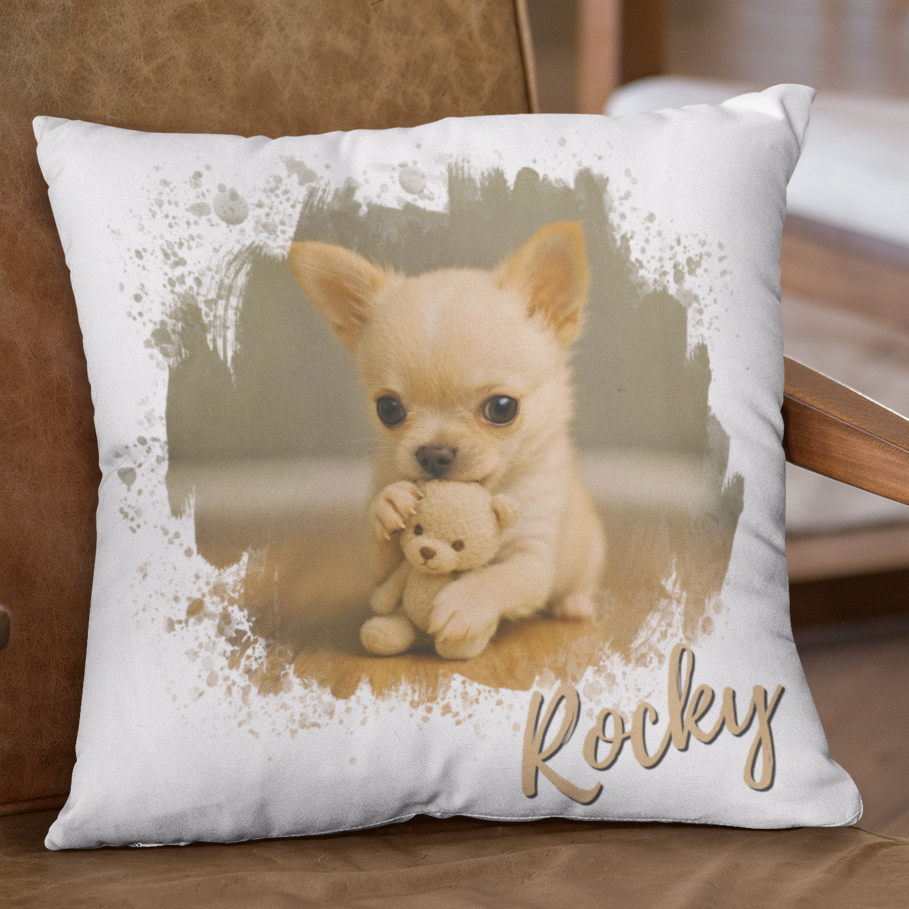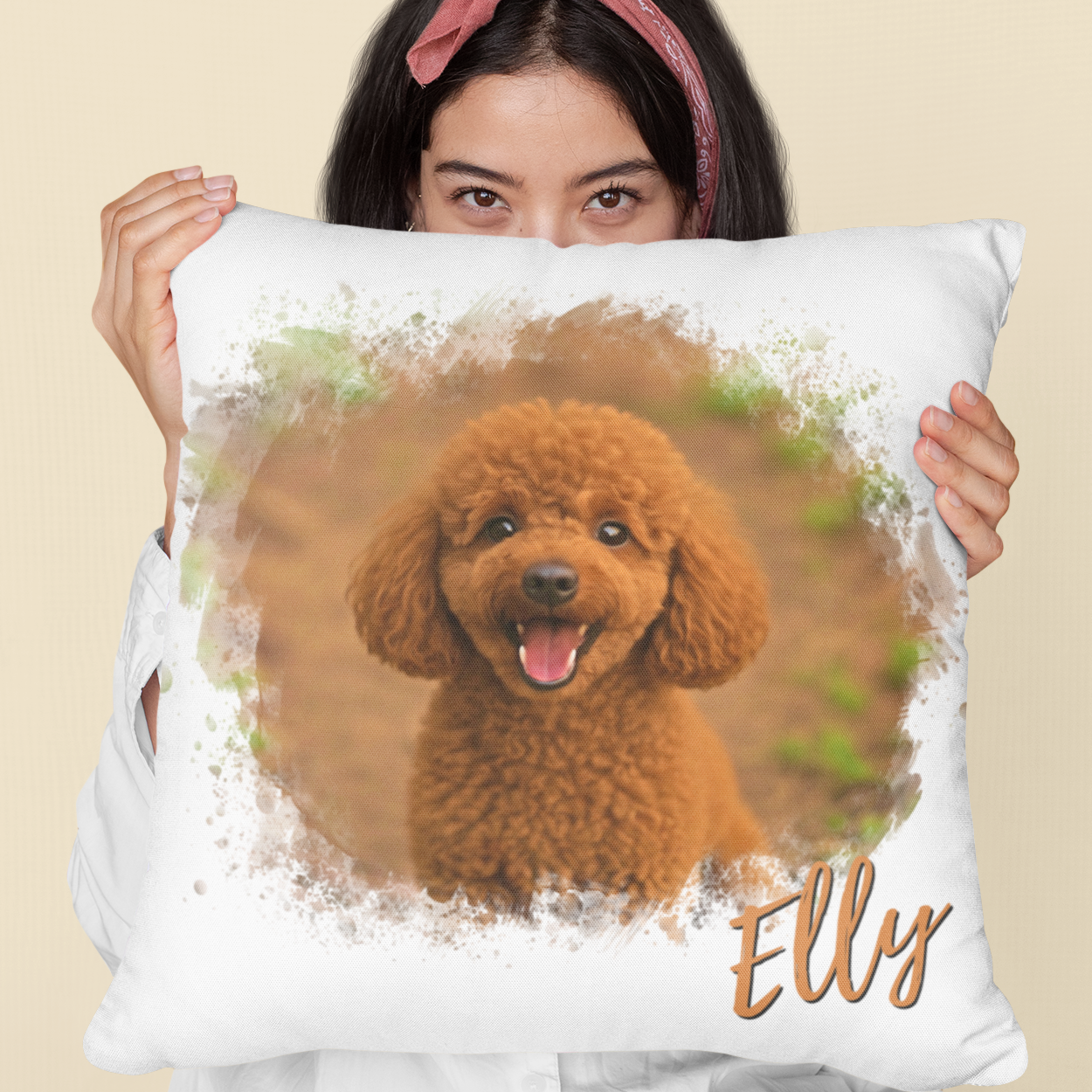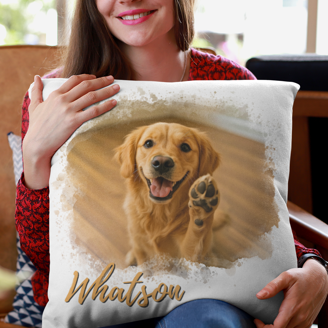 Halte die schönsten Momente mit deinem Haustier fest – als hochwertiges Kissen, das dich jeden Tag begleitet.